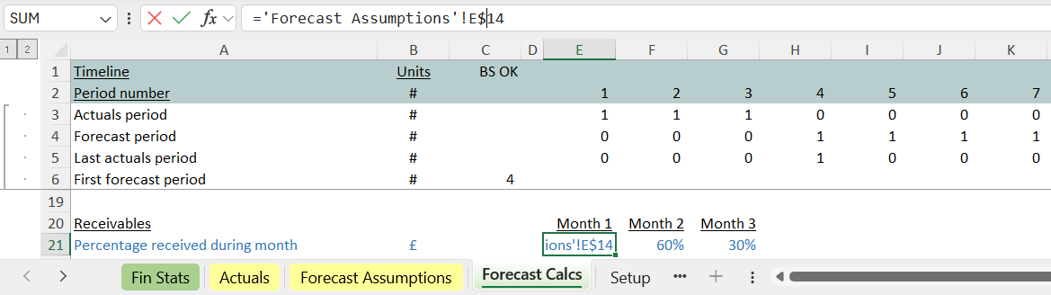 We’re positioning the input figure where it needs to be for the model workings, but the yellow-shaded figures that someone might want to vary are still successfully centralised on the assumptions tab.