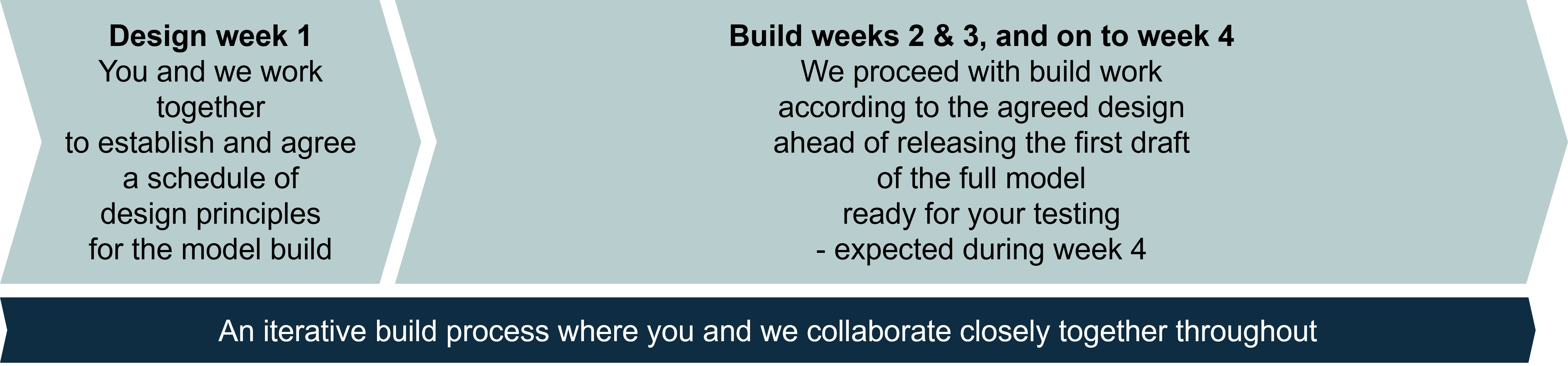 We have many years of experience of wiring up models. We expect to deliver a product that meets the agreed functionality established in the design phase within the project timescales and within the expected fee levels.